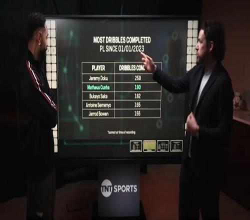 來看看你的一些統(tǒng)計數(shù)據(jù)。看看這個:自你登陸英超以來,你的過人成功次數(shù)排在第二。