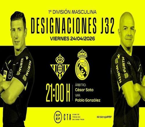 西班牙足協(xié)官方公布了本周五西甲比賽皇家貝蒂斯vs皇家馬德里的裁判安排,索托-格拉多將擔(dān)任主裁。